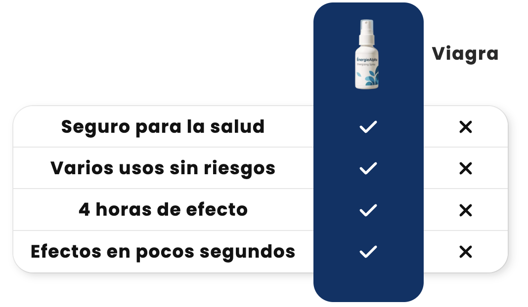 Energia Alfa® es un spray sublingual de acción rápida, formulado con ingredientes de origen natural, pensado para ayudarte a conseguir erecciones más firmes, duraderas y con mayor control en tus encuentros íntimos. Solo aplicás 5 sprays debajo de la lengua, esperás unos segundos y estás listo para disfrutar con más seguridad y placer.