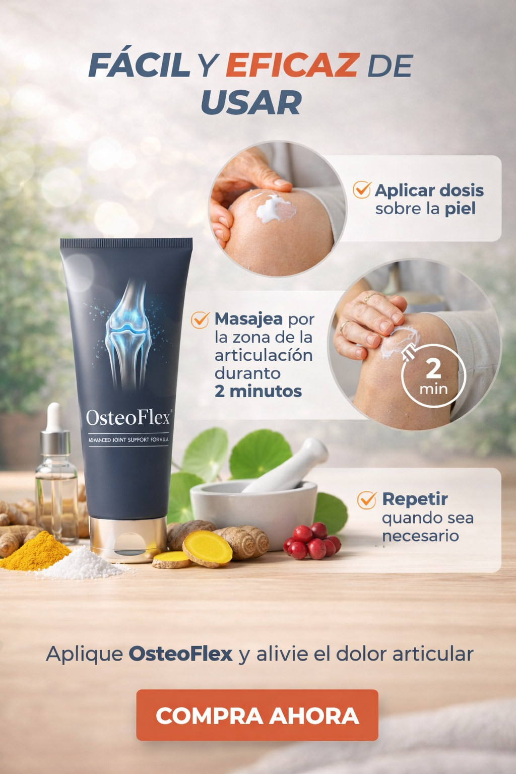 OsteoFlex es una crema para articulaciones pensada para acompañarte en el día a día cuando aparece el dolor, la rigidez o la molestia por uso, esfuerzo o desgaste.